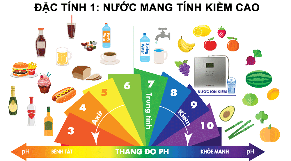 Nước có tính kiềm giúp trung hòa axit độc tố gây nên các bệnh như ung thư, gout, sỏi thận, tiểu đường,..